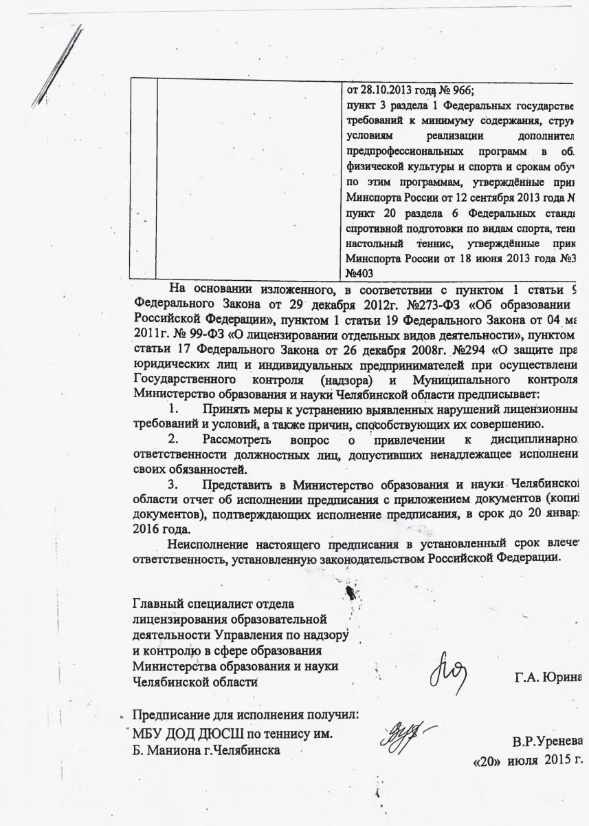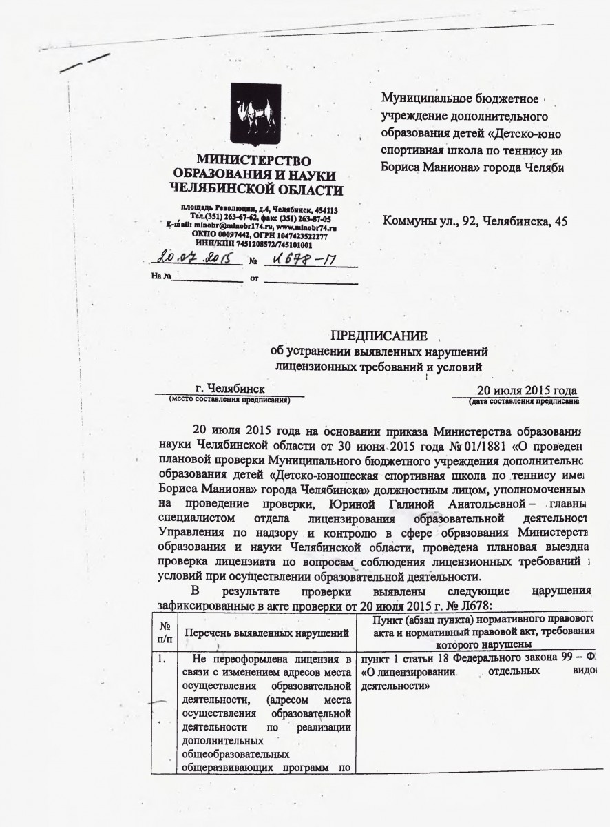 Положение о порядке приема обучающихся, основания перевода, отчисления и восстановления в Муниципальноми бюджетном учреждении дополнительного образования «Дестко-юношеская спортивная школа по теннису имени Бориса Маниона города Челябинска